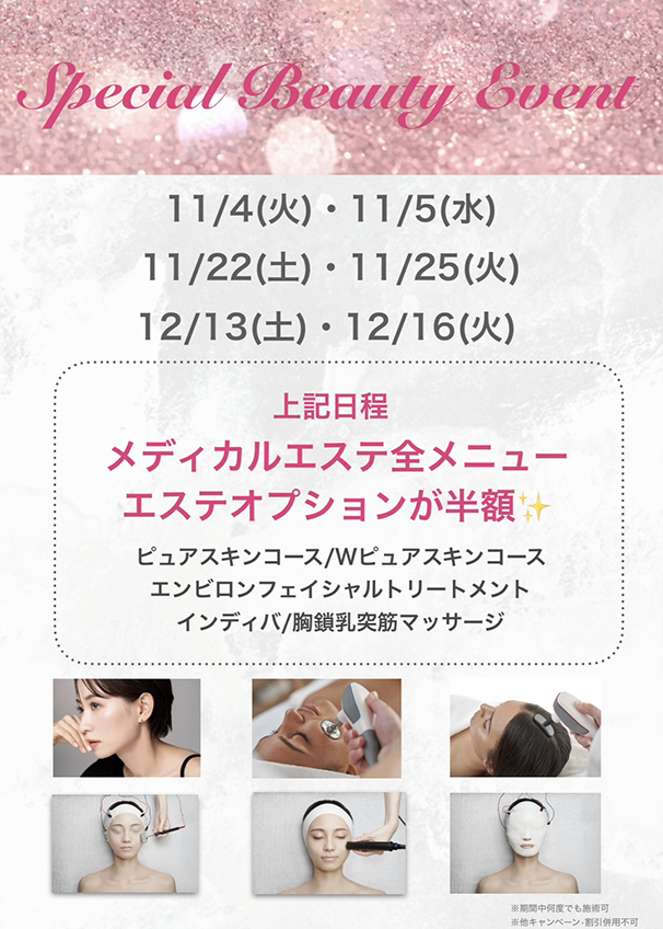 メディカルエステ全メニューがお日にち限定で、なんと半額に!
