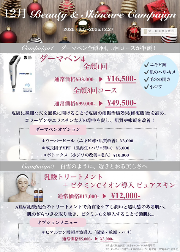 全顔3回コースが通常価格¥33,000が、12月は半額¥16,500-で!