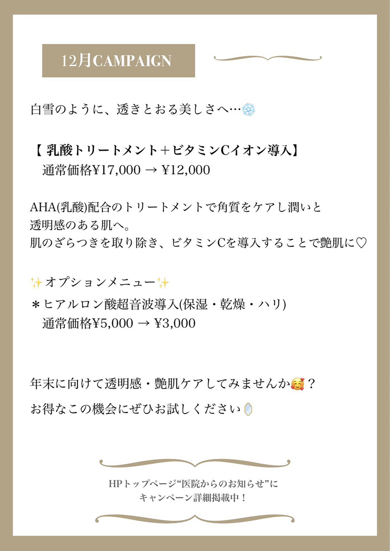 ぜひお得なキャンペーンにてメディカルエステをお受けください。